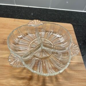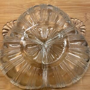 Hazel Atlas Depression Glass Clear Divided Ribbed Dish with Fan Handles