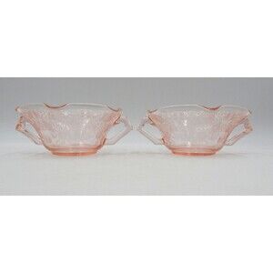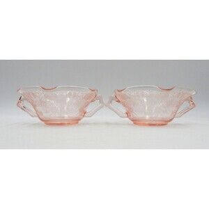 Hazel Atlas Florentine Poppy Pink Depression Glass Two-Handle Soup Nut Bowl Pair