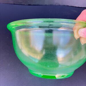 Hazel Atlas Green Uranium Glass 7 inch Rolled Lip Mixing Bowl