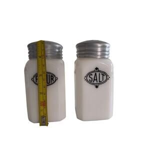 Hazel Atlas Milk Glass Condiment Set, Salt and Flour Dispensers