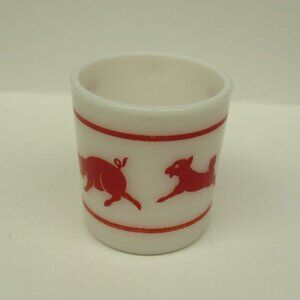 Hazel Atlas Milk White with Red FARM ANIMALS 3 1/8 Inch High Childs Handled Mug