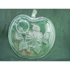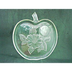 Hazel Atlas Orchard Crystal Clear Glass Apple Dish Flowers Snack Luncheon Plate