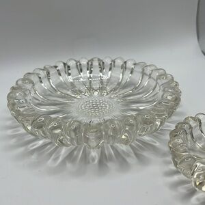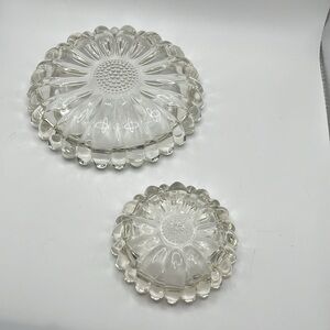 This vintage set of 2 Hazel Atlas clear glass daisy flower shaped candle or trinket holders will look wonderful in your space! They’re perfect for your entryway, hallway, kitchen, living room, dining room, office and more!