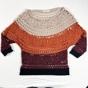 Hazel Crochet Sweater S Boat Neck Dark Boho Open Festival Retro Oversized Beachy