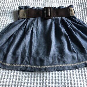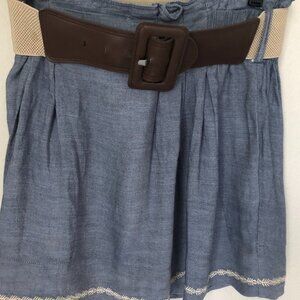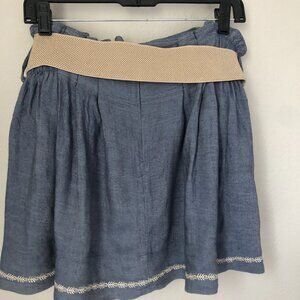 Hazel Denim Look Belted Skirt w/ Embroidery