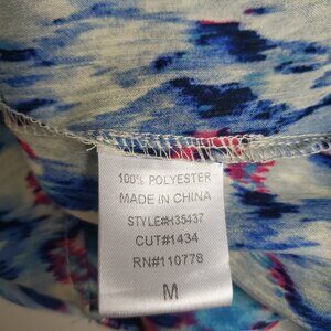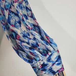 Hazel Hazel Hazel women's top - popover, abstract ikat print pattern, split V-neckline and single button barrel cuff. Blue.
