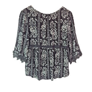 Hazel Jacqueline Boho Tunic Top – Size Large – Black White Floral Crochet Stitch Fix