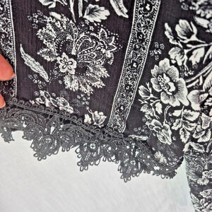 Hazel Jacqueline Boho Tunic Top – Size Large – Black White Floral Crochet Stitch