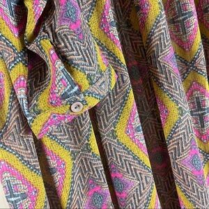 Hazel Large Boho Aztec Flowy Loose Dress Pleat V Neck Swim Cover Vacation Summer