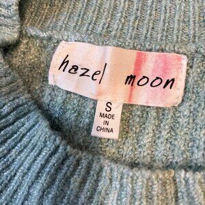 The Hazel Moon Solid Teal Green Long Sleeve Crew Neck Oversized Knit Sweater in size small is a stylish and comfortable sweater designed for women. This pullover sweater features a solid green color with a crew neckline and long sleeves, perfect for a cozy and trendy look. The oversized fit adds a touch of relaxed style, making it a versatile piece for any wardrobe. Made from knit fabric, this sweater from Hazel Moon is a great addition for those looking for a unique and fashionable statement piece.