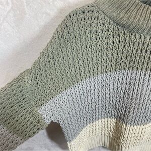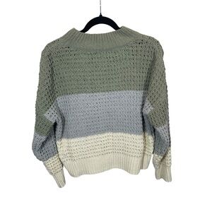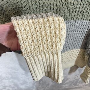 Hazel Moon Sweater Green Ivory Striped chenille colorblock Women’s large