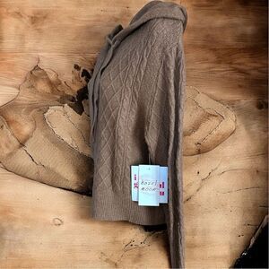 Hazel Moon Women's Brown Cable Knit Cropped Hooded Pullover Sweater Size S