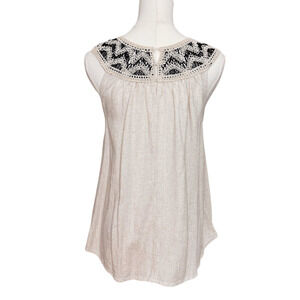 Hazel Haze Oatmeal Off White Black Crochet Round Collar Linen Tank Large Boho