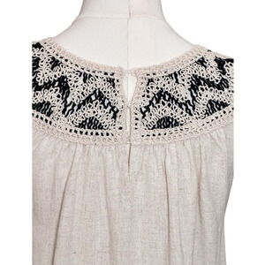 Hazel Oatmeal Off White Black Crochet Round Collar Linen Tank Large Boho