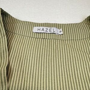 Chic olive dress with subtle stripes. Features a stylish tie front. Ideal for everyday wear.