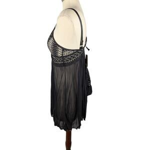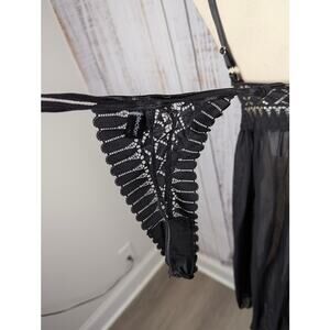 Hazel Plus Size Lace & Mesh Babydoll 2pc Lingerie Set Black Size 1X