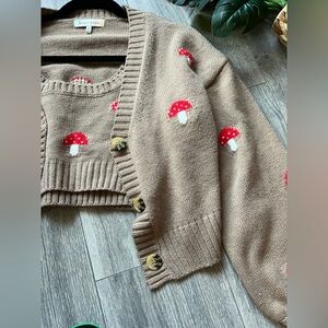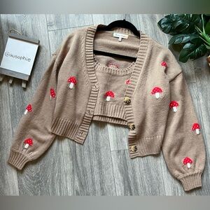 Hazel moon dollskill mushroom tank and cardigan set. Size M