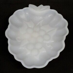 Hazel-Atlas Opaque Milk Glass Embossed Grape Snack Dish -Trinket - Candy-Vintage
