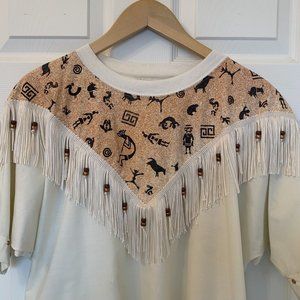 Hazelwoods Southwestern Fashions Womens Aztec Fringed Petroglyphs Top Large VTG