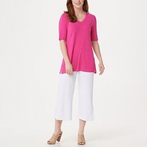 H by Halston Essentials Elbow-Sleeve V-Neck Tunic w/ Wide Side Slits