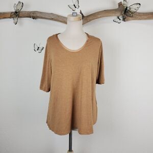 Oversized slouchy fit camel colored tan dressy tshirt style top.