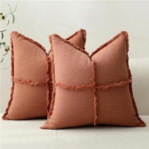 🧿Luxurious and Cozy Fringe Design】 Solid pillow cover designed with fringe at edges, which are torn out by hands and treated with washed crepe, easy to match with others, creating a cozy look for home interior. When you take a nap and rest your head on the soft, crisp and cozy cushion cover, it is breathable and so cool.