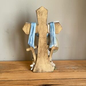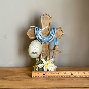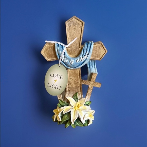 The "He Is Risen" Standing Cross is a beautifully crafted Easter decoration featuring a Jesus Christ figure surrounded by lilies. Made of resin and standing at a height of 9.5 inches, this collectible item is perfect for expressing faith and spirituality in your home or place of worship. With its origins in China, this cross symbolizes the lasting presence of our risen Lord in our lives.