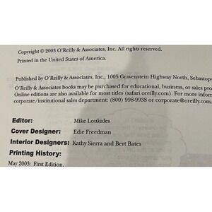 "Head First Java" by Kathy Sierra and Bert Bates is a first edition paperback book published in 2003. The book is designed to teach Java programming in a unique and engaging way, using a visual approach to aids in learning. With a focus on the computer and IT genre, this vintage book is lightweight at 2.6 lbs and provides a comprehensive guide for learners looking to understand the concepts of Java programming. The book also draws influences from the Enlightenment and Realism literary movements, making it a valuable resource for those looking to enhance their understanding of Java programming.
