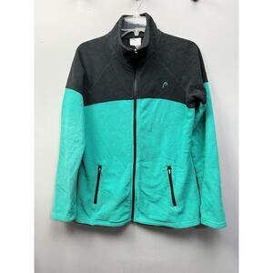 Head Jacket Fleece Womens Size Medium Green Black Full Zip Pockets Long Sleeve