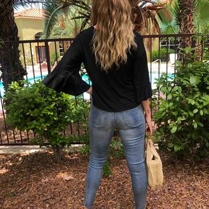 The Head Over Heels Bell Sleeve Top is essential to any chic wardrobe. It's a classic black top that would amaze anyone that sees you wearing it. Pair this top with trousers and loafer slides for a look that goes from work to cocktails in an instant!