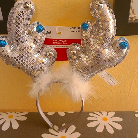 These are beautiful reindeer ears with sequence and silver and bluebells.
