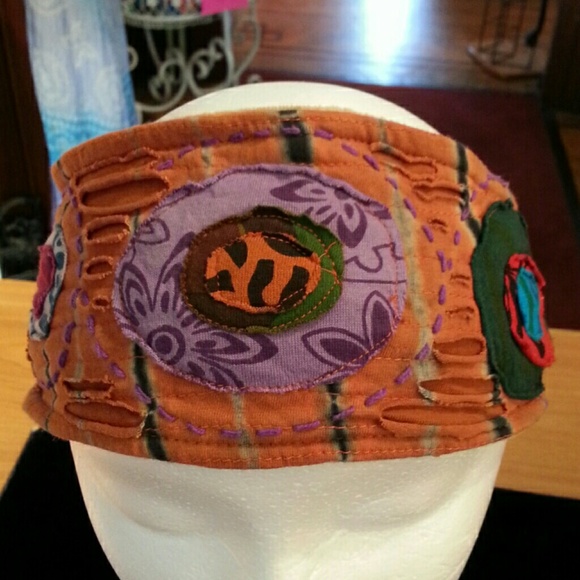 Orange green purple red stretch headband. New with tag. Reversable. Reverse side gold velore with purple stitching.