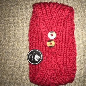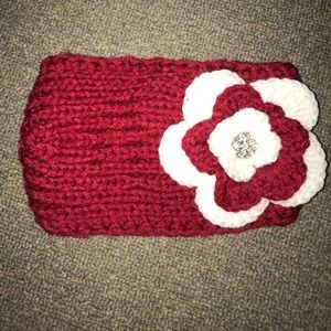 Red adjustable headband with flower decorating. Great for fall/winter weather, never worn!
