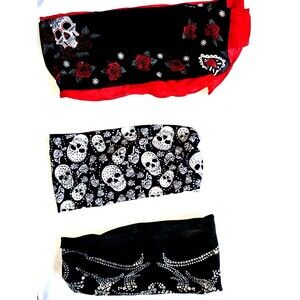 This product is a lot that includes a multicolor headband and bandana, perfect for women who want to add a touch of skulls to their activewear or casual outfit. The headband is designed for women who enjoy personalizing their accessories, and the character of the skulls adds a unique and edgy flair to the overall look. The versatile design of the headband and bandana allows for various styling options, making it a great addition to any wardrobe.