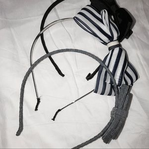 Cute headbands w/ ribbons on them! Slight discoloration on the striped one which can be seen in the picture. The black one is from Claire's, striped is from H&M and the grey one is from Banana Republic. Open to offers!!
