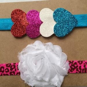 Be My Funny Valentine boutique 2-3Y headband set. Appx. 17" Elastic. Hearts. Flower. Shabby. Holiday. Valentine's Day.