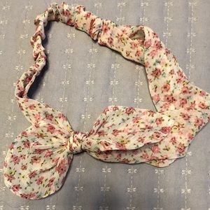 Two bow headbands. One white and one with flowers. Has elastic in the back to keep them on. Never worn