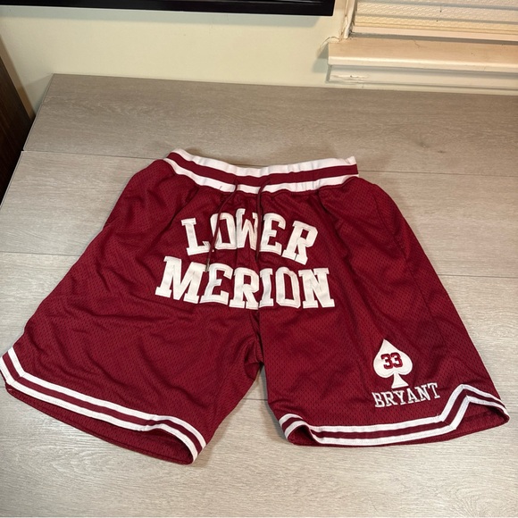 Red basketball shorts with 'Lower Merion' text. Features number 33 and 'Bryant' detail.