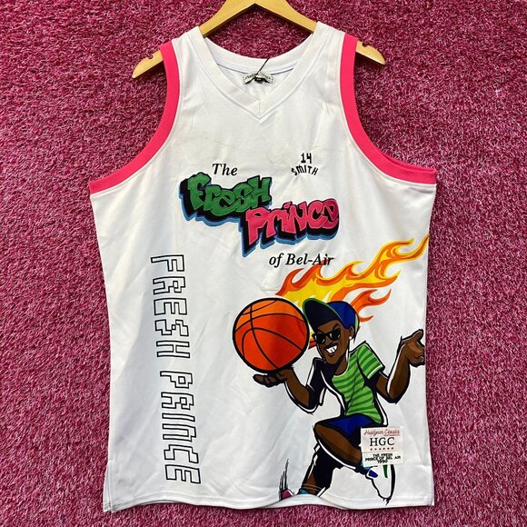 Headgear Classics The Fresh Prince of Bel-Air Basketball Jersey 3XL. Generally measures 25 inches pit to pit and 33 inches long. Amazing Jersey featuring a multi-colored graffiti design with "The Fresh Prince of Bel-Air" text with a cartoon of Will Smith in the design. New never worn and in great condition.