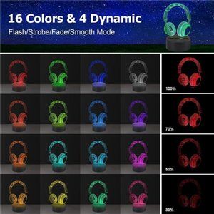 Headset 3D Illusion Lamp 16Color Night Light,Smart Touch Sensor & Remote Control