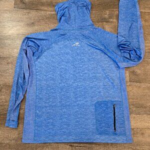 Only tried on a couple of times. Made form Recycled water bottles. Size XXL. Thumb Holes. Back Pocket. No SPF or UPF.
