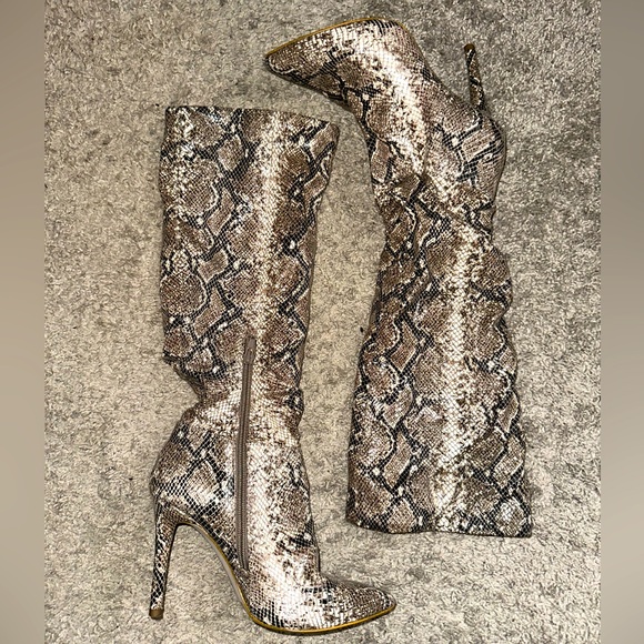 Crocodile material kneehigh heeled boots