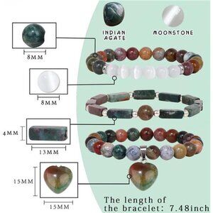 *【Amethyst Moonstone Crystal Bracelet Set】 Lovely carved heart stone pendant charm bracelet. Each beads are hand picked and strung on high quality elastic stretch cord to ensure the best quality. Each set includes three different natural amethyst Moonstone bracelets