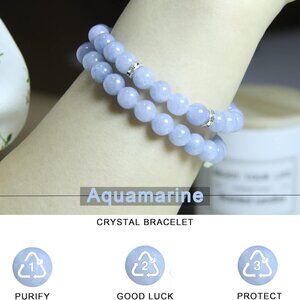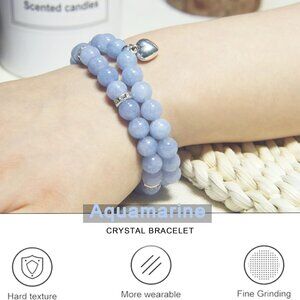 Healing Crystal Bracelets 2Pcs - Adjustable Aquamarine Stress Relief Gifts
