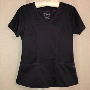 Healing Hands S Purple Label Charcoal Gray V Neck Two Pocket Scrub Top