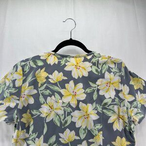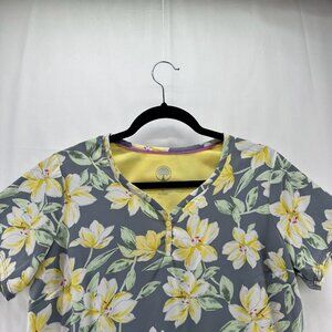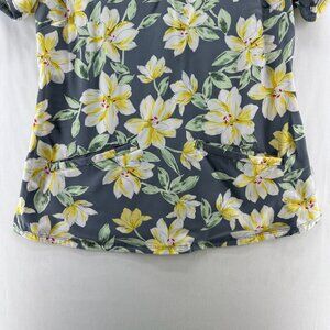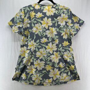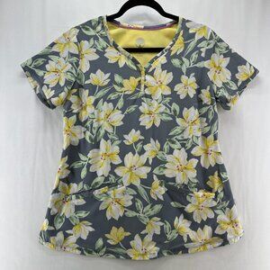 Healing Hands Scrub Top Womens M Isabel Floral Print Medical Uniform Gray Yellow