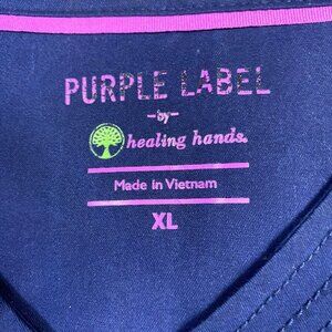 Healing Hands Women's Scrub Top XL Blue Solid Purple Label