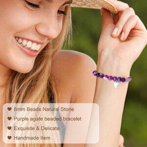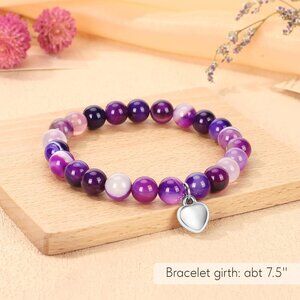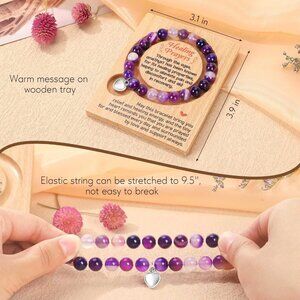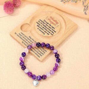 Features: Elegant 8mm purple stone beads on a durable elastic cord, accented with a tiny heart charm for extra love. Comes with a wooden tray engraved with "Healing Prayers" and an inspirational message card — the perfect way to show you care.