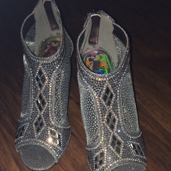 Only worn for one occasion. Bought this year. Charcoal grey with rhinestones, and a bluish tint.