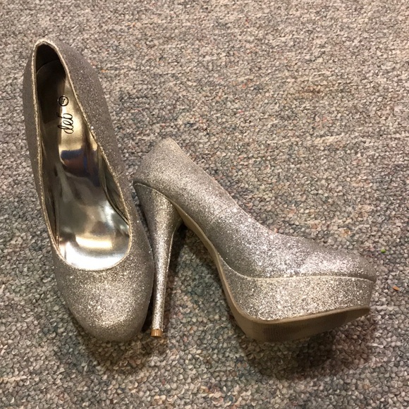 Size 7 silver heels. Only worn once for prom